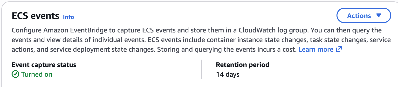 With that, your ECS cluster will show Event capture as enabled: