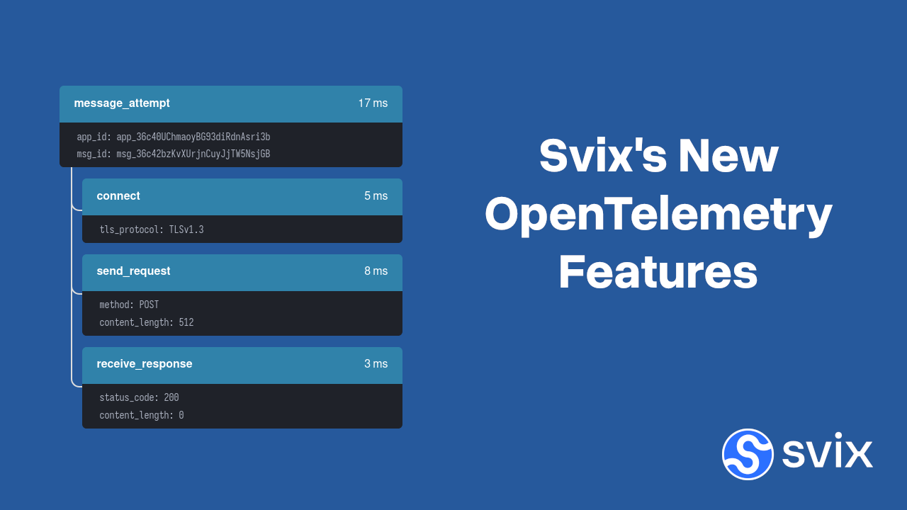 OpenTelemetry is a leading open-source toolkit for observing application performance, offering support for tracing, metrics, and logging. At Svix, we've been using OpenTelemetry for years both to monitor our platform internally and to make OpenTelemetry data available directly to our Enterprise customers, allowing them to better understand both our platform and their own customers' usage of it.