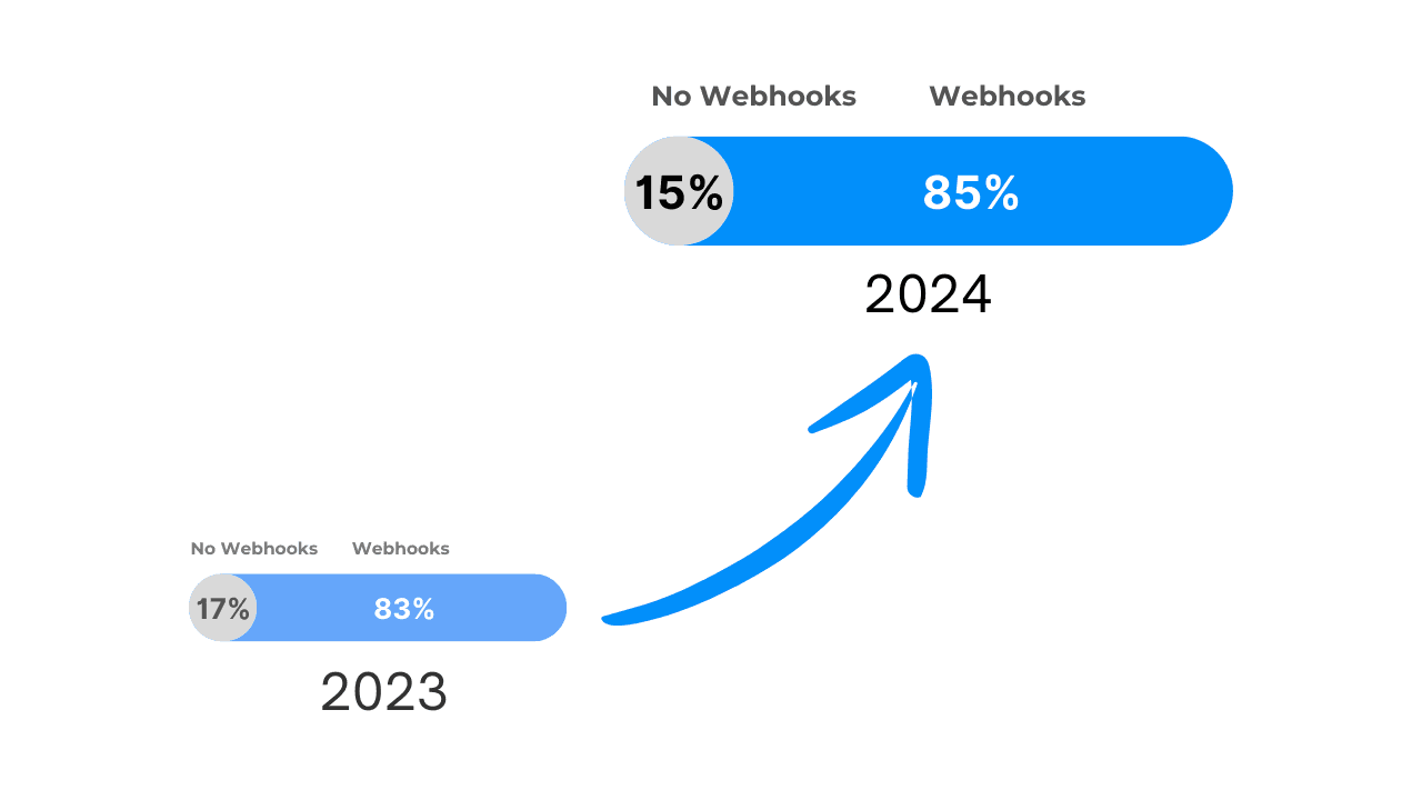 Webhook adoption increased from 83% to 85%.